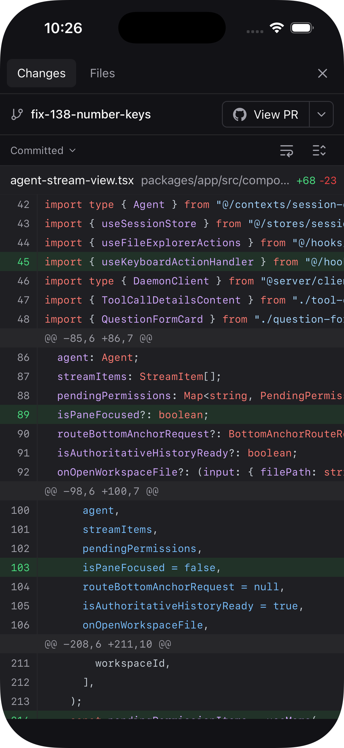 Paseo diff view